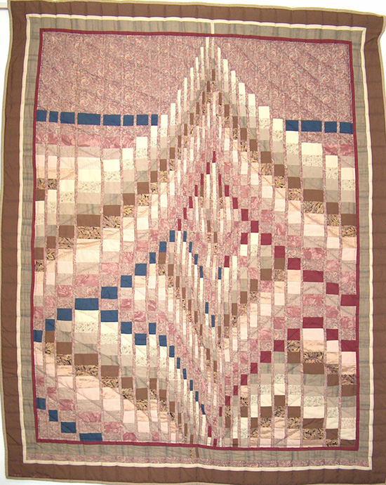 מידות בס"מ : 122X153 / טכניקה : ברגלו, תפירת רצועות בהזזה. / תיפורים : ביד. / חומרים : בדי כותנה חלקים ומודפסים.
