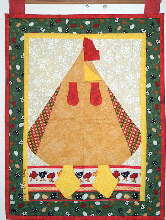 מידות בס"מ : 38X49 / טכניקה : תפירה על פי מגזרת נייר./ תיפורים : ביד ובמכונה. / חומרים : בדי כותנה מודפסים.