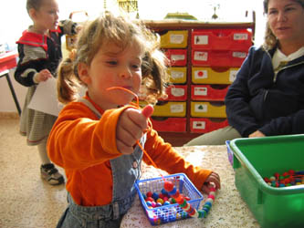 משחקי השחלה והרכבה בעלי חלקים קטנים דורשים מהילד מאמץ יתר וריכוז רב. כדי להבטיח את הצלחתו בביצוע המשימה הגננת תדאג להקטין את גודל החרוזים בהדרגה ותדאג לתת חיזוק מילולי או פיזי אף על חלקי הצלחה. הדבר נכון גם לגבי הרכבת פאזלים ברמות קושי עולות וכיו"ב.