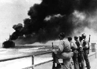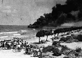 Begin had meanwhile boarded the Altalena, which was now heading for Tel Aviv. He hoped that it would be possible to enter into a dialogue with the Provisional Government and to unload the remaining weapons peacefully. But this was not the case. Ben-Gurion ordered Yigael Yadin (acting Chief of Staff) to concentrate large forces on the Tel Aviv beach and to take the ship by force. Heavy guns were transferred to the area and at four in the afternoon, Ben-Gurion ordered the shelling of the Altalena . One of the shells hit the ship, which began to burn. There was danger that the fire would spread to the holds which contained explosives, and the captain ordered all aboard to abandon ship. People jumped into the water, whilst their comrades on shore set out to meet them on rafts. Although the captain flew the white flag of surrender, automatic fire continued to be directed at the unarmed survivors. Begin, who was on deck, agreed to leave the ship only after the last of the wounded had been evacuated.
