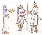 ויהי בהיות יהושע ביריחו... והנה איש עומד לנגדו וחרבו שלופה (פרק ה, יג) |